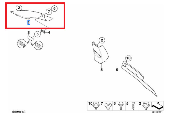 Écran montant A ITS (schwarz ) montant de porte avant / pare-brise (coté au choix) pour BMW Série 6 E63