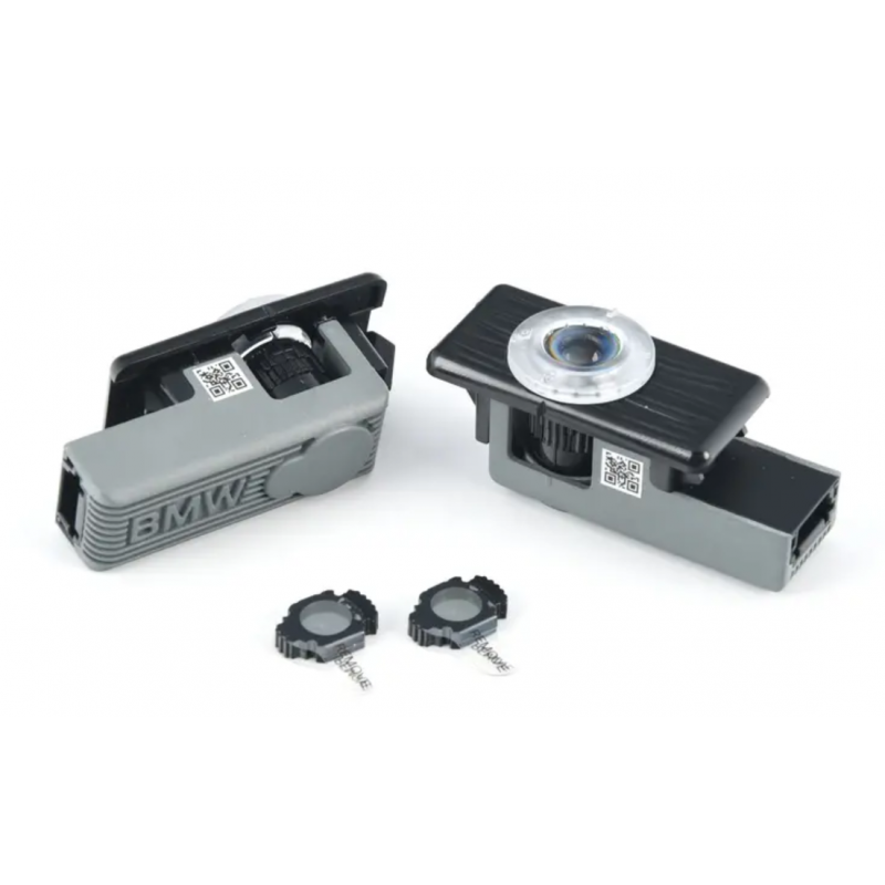 Les projecteurs à LED M Performance pour portes ajoutent quatre graphiques interchangeables aux projecteurs à LED de logo BMW. Le motif choisi est automatiquement projeté sur le sol à l'ouverture des portes.